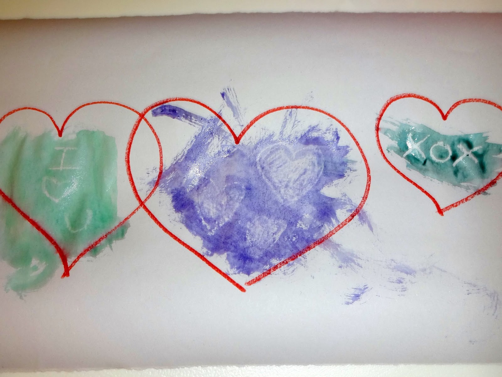 time I told her to only paint inside the hearts. Much neater results. Fun