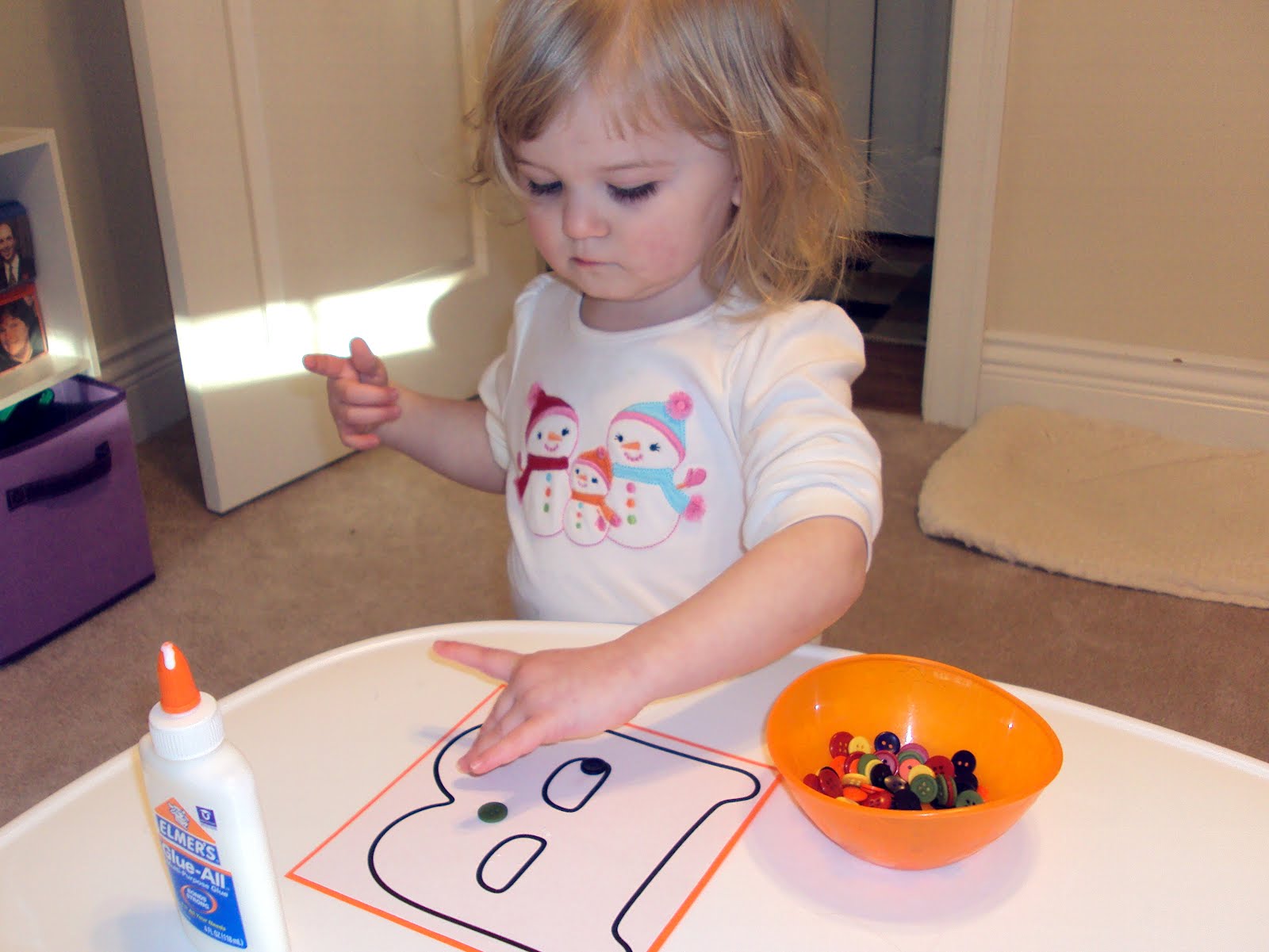 It was a lazy day for us, so we basically kept it simple for the remainder of the day. This was an ongoing game where we just asked her to identify her right from her left. "Where is your right hand?" "Which is your left foot?" "Which cup is on the left?" etc. I know it is a 50/50 chance that she would answer correctly, but she did surprisingly well with this game.